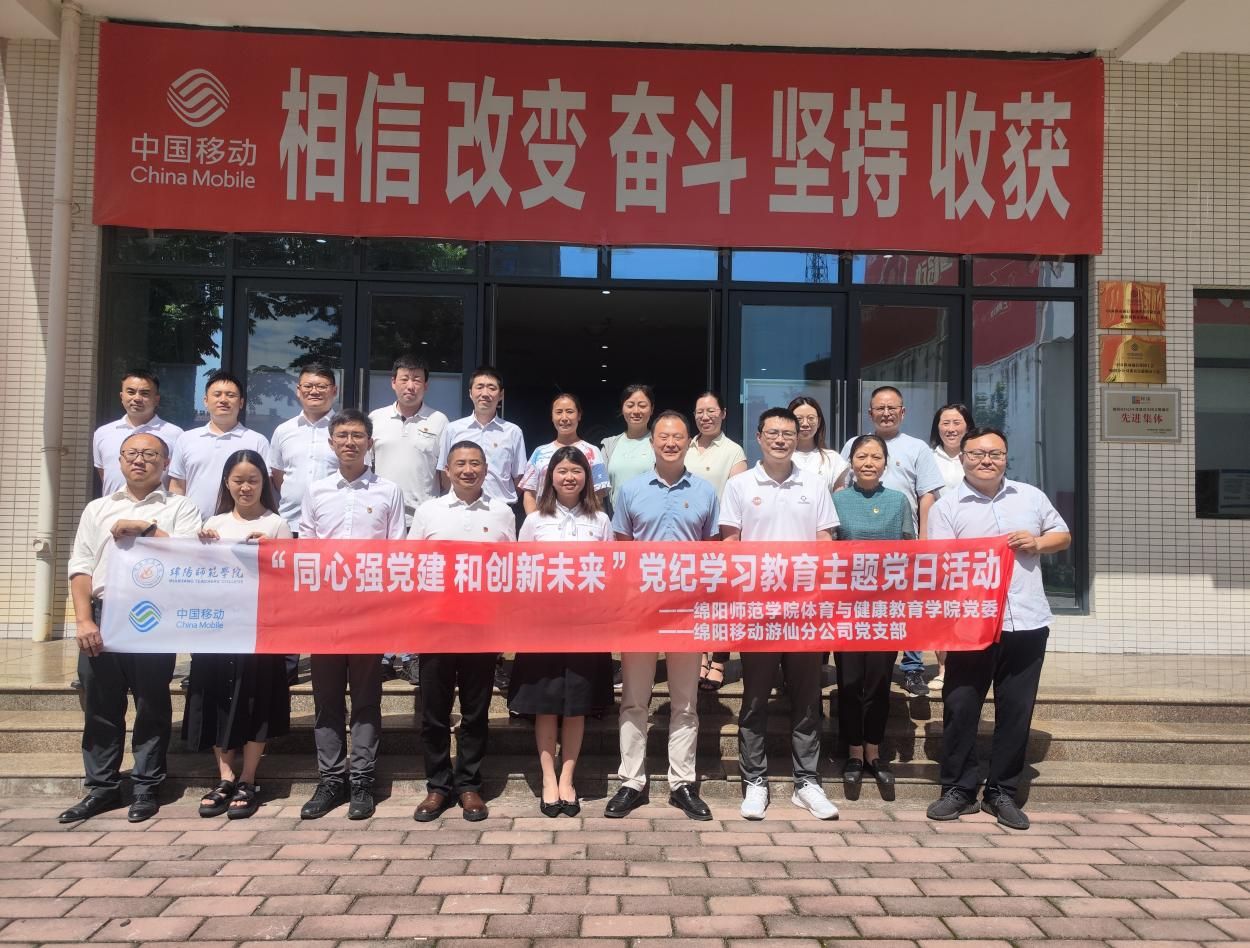 为推动党纪学习教育进一步走深走实,本着相互学习交流、合作共赢的目的,体育与健康教育学院党委、中国移动游仙分公司党支部于6月11日在中国移动游仙分公司驻地联合开展“同心强党建 和创新未来”党纪学习教育主题党日活动。体育与健康教育学院党委委员、党支部书记参加活动。活动由中国移动游仙分公司党支部书记、总经理刘俊芳主持。