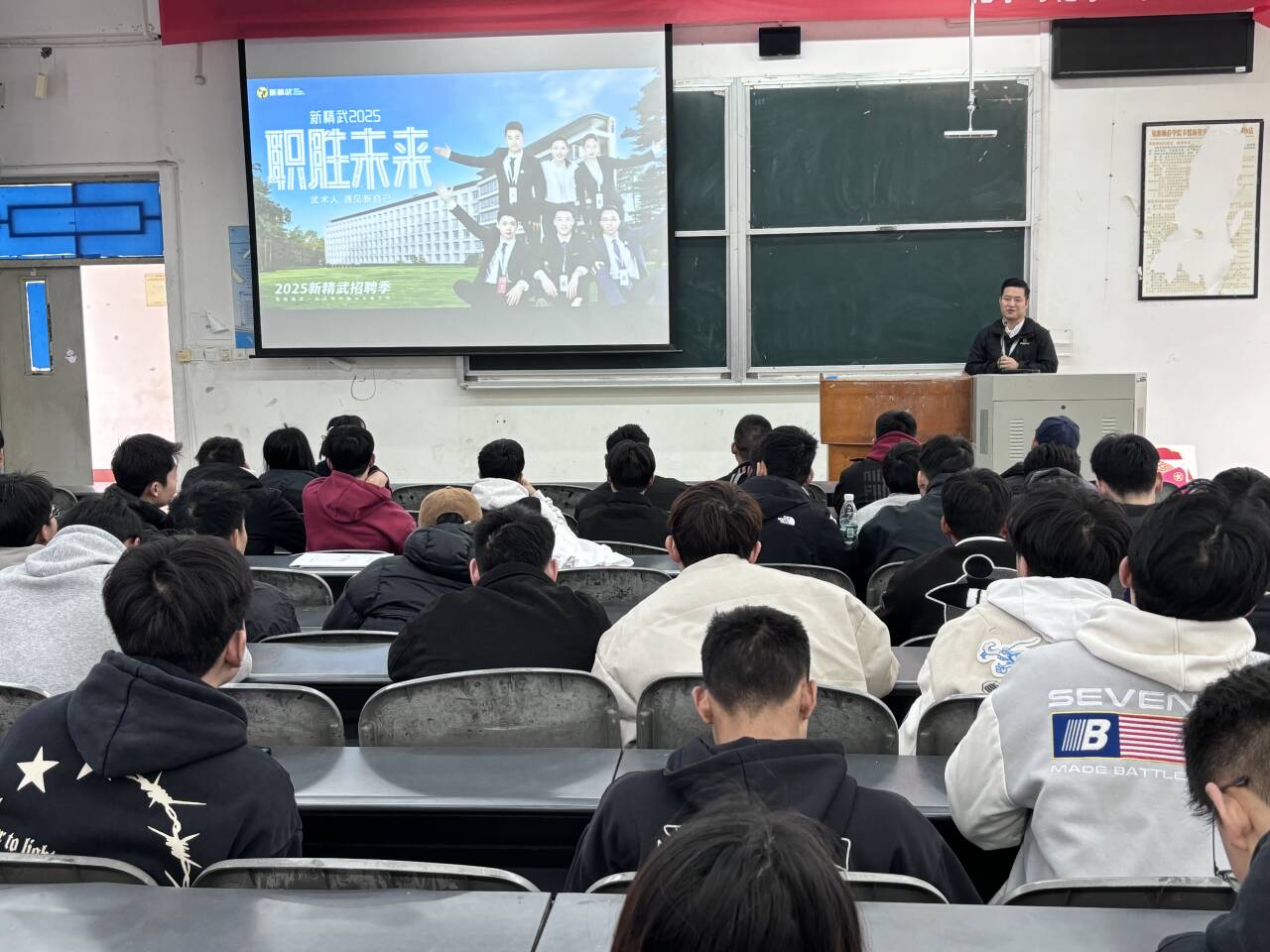 会议还特别邀请了上海新精武教育集团的李强老师进行宣讲。李强老师对新精武教育集团的发展情况、业务范畴及招聘信息进行了详细介绍,热忱欢迎同学们进一步了解集团,加入集团,开启职业生涯新篇章。