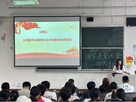 任静芝对过去一学年的团学工作进行了总结。她高度评价团学组织在思想引领、校园文化建设、服务同学等方面交出的亮眼答卷,对全体团学成员的辛勤劳动致以诚挚谢意。同时,任老师也向同学们寄予殷切期望,鼓励大家持续发扬体育人敢打敢拼的精神,在自我提升的道路上奋勇前行,为学院团学工作实现新突破注入强劲动力。
