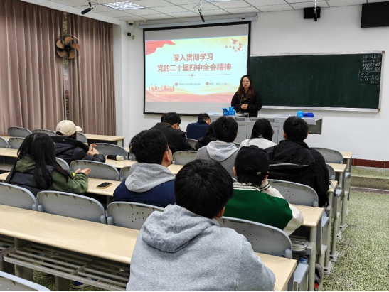 为推动党的创新理论入脑入心,引导支部成员深刻领会二十届四中全会精神内涵,10月30日,william威廉英国学生第一支部在游仙校区三教104教室开展专题政治理论学习活动。本次学习由党支部书记朱玉主持,支部全体党员(含预备党员)和发展对象共同参与,围绕二十届四中全会精神展开深入学习。