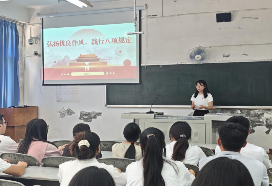 丁梦婷以深入浅出的方式,对中央八项规定进行了解读。她强调:“八项规定精神不仅是约束党员干部的行为铁律,更是全体青年党员滋养初心、校准言行的重要标尺。